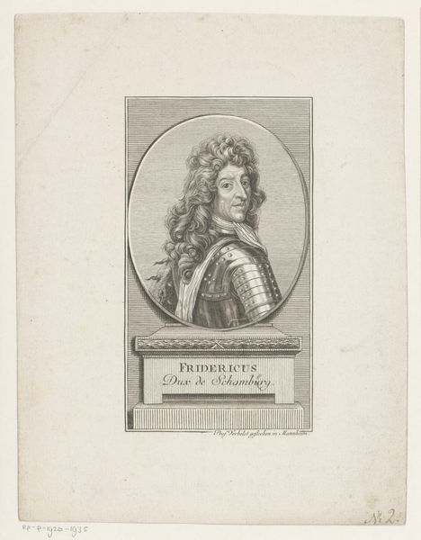 This lithograph of Louis Victor de Rochechouart de Mortemart, the Duke of Vivonne, was created by Antoine Maurin. The figure emerges from a light background, his armor and voluminous wig rendered with meticulous detail. The composition is simple, focusing on the sitter's persona. The artist has used delicate hatching and shading, to create a sense of volume, while the restrained palette enhances the subject's noble stature. This portrait’s formal construction, with its emphasis on the Duke’s confident gaze, creates a representation of power and authority. Maurin’s formal choices invite us to consider the signs of nobility and how they were constructed and conveyed through the visual language of portraiture. Consider how the artist balanced the textures of fabric, metal, and hair. The portrait captures not just a likeness, but also the visual codes of social standing in the 19th century.