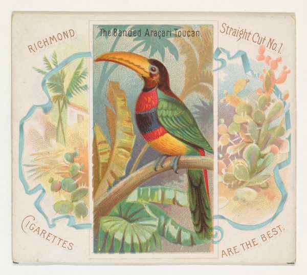 This late nineteenth-century chromolithograph of a Baltimore Oriole comes from Allen & Ginter, a Richmond, Virginia cigarette manufacturer. Mass-produced color images like this one depended on relatively new printing technologies. Each color required a different stone or plate, and a separate pass through the press. This sort of industrial process, demanding intense labor, was typical of the period. The aim was to associate the company’s brand with natural beauty – but the image is also a powerful artifact in its own right. Its design showcases the bird alongside other wildlife scenes, carefully composed to appeal to the consumer's eye. The very small scale of the image speaks to its function as a collectible item, designed to be traded and admired, creating community among consumers of the product. By considering the materials and context of this artwork, we gain insight into the history of production and consumption, expanding our understanding of art beyond traditional boundaries.