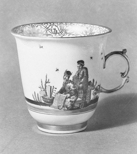 This delicate two-handled cup was crafted in Meissen, a German town known for its porcelain, sometime after 1710. The cup is adorned with Chinoiseries: stylized depictions of Chinese life and motifs. Notice the figure fishing, a motif that stretches back to ancient Chinese art. The fisherman, often a symbol of patience and contemplation, appears in various guises across cultures. In some contexts, he represents the pursuit of knowledge or spiritual enlightenment. Yet, here, the scene is flattened into a decorative pattern. This appropriation reflects a Western fascination with the exotic East, filtered through the lens of commerce and fantasy. The palm tree, an umbrella, and the figures are all elements of an imagined landscape, a projection of desire. It's a cyclical dance of influence, where symbols are borrowed, adapted, and re-contextualized, revealing our enduring human tendency to project our desires and fears onto the unknown.