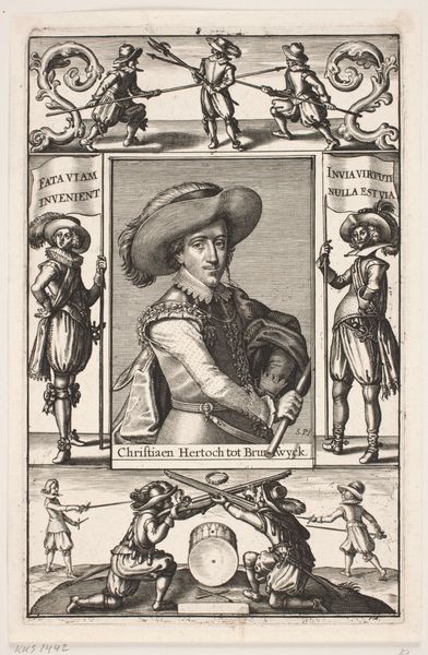This engraving of Hertug Christian af Braunschweig was created by Simon de Pas at an unknown date. Braunschweig was a German state and its Duke is pictured here with the accoutrements of military command. His extravagant hat with feathers and floral decoration on his doublet speak of the fashion of the European elite. These kinds of portraits were not only about representing an individual but also about upholding power structures, social norms and national identities. This image would have been made in multiple to circulate as a reminder of leadership. Historical sources and biographical details can help us to look beyond the surface of the image and understand the social dynamics that shape the creation and reception of art. By understanding the conditions and cultural context surrounding it, we can reflect on the public role of art and the politics of imagery.