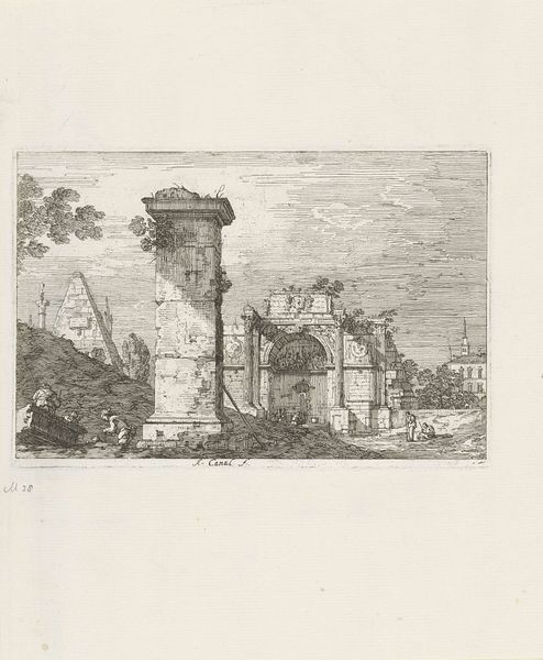 Leendert Brasser made this print, entitled "Landscape with Roman Ruins and Obelisk," using etching techniques sometime in the late 18th century. It is a timeless memento of The Grand Tour. In the 18th century, it became fashionable for young, upper-class Europeans to travel around the continent as a rite of passage. Italy, with its classical ruins, was a must-see destination. Prints like this one allowed tourists to take home images of famous sites like the Roman Forum, obelisks, and towers. Brasser catered to that market, creating detailed views that evoked a sense of history and the passage of time. The print's composition, with its combination of recognizable monuments and picturesque figures, embodies the era's fascination with classical antiquity and the desire to experience it firsthand. By studying the travel patterns, art market, and popular imagery of the time, we can better understand the social forces that shaped the production and consumption of art like this print. The Rijksmuseum's collection itself is an invaluable resource.