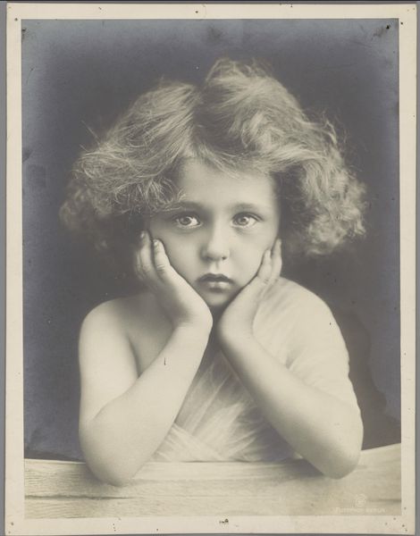 Editor: This gelatin-silver print, "Georgia Engelhard," was captured by Alfred Stieglitz in 1918. It feels both intimate and a little unsettling. What symbolic weight does this image carry for you? Curator: The knitting needles, for instance – consider them not merely as instruments of domesticity, but as wands enacting creation and protection during a time of global turmoil. It speaks of hope in an uncertain period, much like we see mirrored during contemporary crises. Editor: Hope, yes, but I’m also drawn to her rather stern expression. Is there a contradiction there? Curator: Her expression can also be interpreted as an unflinching look, a confrontation with a turbulent world. Perhaps the knitting is also about claiming control over chaos, thread by thread. Does her youth strike you? The First World War had an insatiable appetite; to imagine a young knitter at that time becomes quite poignant. Editor: That's a perspective shift! The act of knitting suddenly has an urgency I didn't notice before. So, you’re saying the knitting isn't just a domestic scene, but an act loaded with personal and historical resonance? Curator: Precisely! And think of Stieglitz himself, devoted to modernism. Was this embrace of a traditional domestic craft perhaps also a commentary on the rapidly changing role of women? What meanings could that hold? Editor: I hadn’t considered Stieglitz’s intention in that light. It gives a completely new texture to the photo, layers of cultural significance. Curator: Indeed. Every detail contributes to its dense web of meaning. It seems that nothing is ever "just" one thing.