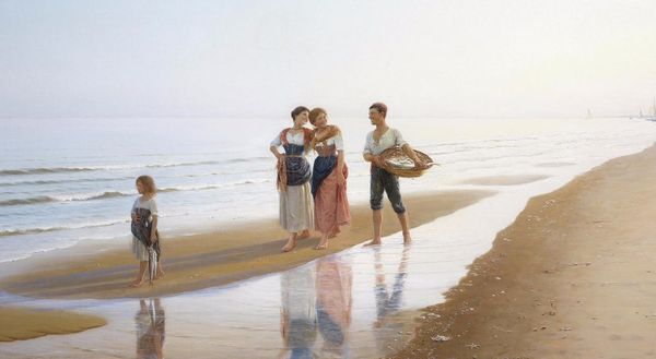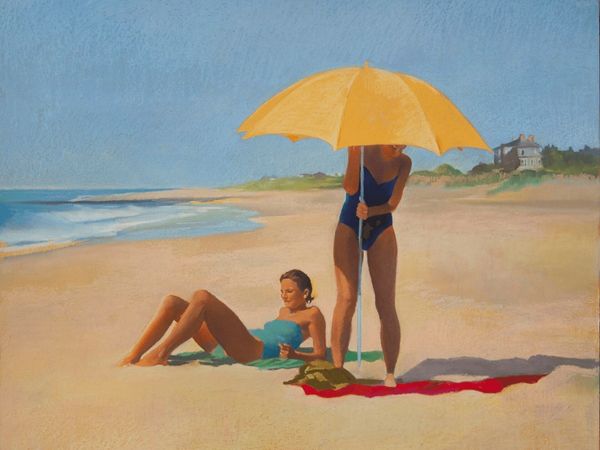 Tom Lovell, painted "The Beach," capturing a scene imbued with the innocent joy of seaside life. The painting shows a mother and her three children clustered by her side as she holds a towel to dry them, while a young man is attending to his shoes to the left. Consider the protective gesture of the mother with the children huddled around her. We see this motif echo across eras, notably in depictions of the Madonna sheltering the infant Jesus and young John the Baptist under her protective mantle. Even in ancient Roman art, the "pudicitia" gesture, where a woman modestly covers herself, evokes protection and virtue. Lovell modernizes this timeless symbolism, grounding it in the everyday. The cyclical nature of these images reminds us that human emotions remain constant, and that artists draw upon a well of shared experiences and visual motifs, reinterpreting them for their own time. These symbols never truly disappear; they resurface, evolve, and take on new meanings.