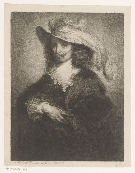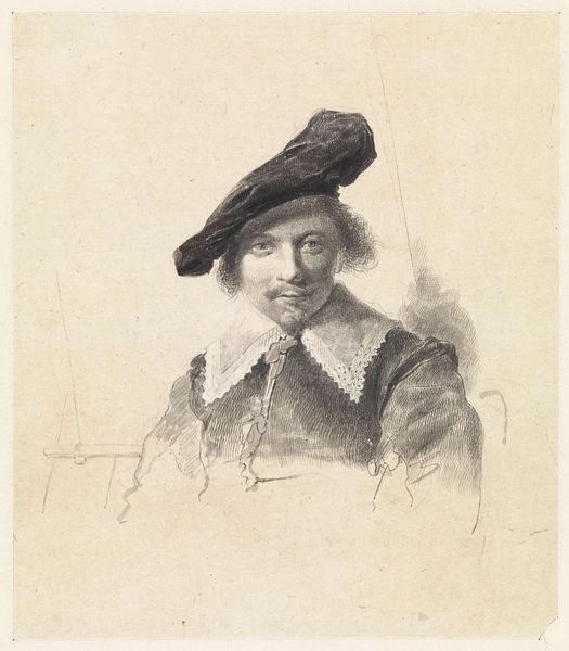 Editor: So, this is a portrait drawing of Hendrik Verschuring, a painter from the Dutch Golden Age. It's anonymous, dated sometime between 1645 and 1709, done in charcoal, and is currently housed at the Rijksmuseum. I find it quite intimate, especially for a formal portrait. What do you make of it? Curator: The intimacy you perceive is interesting. Think about the context: the rise of the bourgeoisie in the Dutch Golden Age, a merchant class that sought to represent themselves. How did they want to be seen? Verschuring, as an artist himself, likely had specific ideas. What's communicated through his gaze, his attire, his overall presentation? Is it a projection of status, artistic identity, or something else entirely? Editor: I guess I hadn't really considered that the subject being an artist would influence how they are depicted. His gaze feels almost direct, certainly confident, but I was focusing on the softness of the charcoal and how that conveyed a sense of approachability. Does that softness also play into a deliberate presentation? Curator: Precisely. Charcoal allows for a subtlety of shading and texture, a nuance that can soften features and create a certain ambiance. This, juxtaposed against the power and wealth being established during the Golden Age offers insight into the intersection of individual representation and broader socio-economic currents. This approach might highlight a departure from the sterner, more overtly opulent displays of aristocracy found elsewhere. The deliberate casualness, perhaps, makes a statement about Dutch values? Editor: I see what you mean! It makes you consider what exactly constitutes ‘status’ or ‘wealth’ in this specific cultural setting and time period. This has been such an insightful exploration - thank you! Curator: It was a pleasure! Considering art's role within larger social narratives enriches our understanding beyond aesthetics.