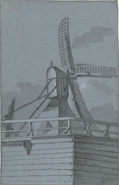 Curator: This is "West Anchor to East," a 1936 graphite drawing by Otis William Oldfield. It exemplifies Precisionism through its depiction of urban and industrial motifs. What's your immediate reaction to it? Editor: It’s starkly beautiful. The heavy use of graphite gives it this very tangible, almost somber feeling. You can practically feel the grit and weight of the bridge looming overhead. Curator: The bridge is clearly the focal point, but I am interested in the construction materials depicted in the lower portion of the drawing, particularly because the print medium emphasizes textures so meticulously rendered by Oldfield. Editor: Absolutely. The sharp focus and high contrast draw attention to the construction itself. Given the context of the 1930s, this focus resonates with the period’s emphasis on industry, progress, and also perhaps speaks to the collective effort needed to overcome economic hardship. Curator: That collective effort would depend directly on the skill and availability of industrial laborers, often at great personal cost, don’t you agree? I find myself contemplating what it must have been like to build it. Editor: And whose stories weren’t told in the celebration of progress? This piece opens questions about marginalized workers whose labor fueled this rapid industrial expansion, whose experiences are muted or simply absent. Curator: Oldfield certainly makes a statement about modernism's relentless march and erasure of boundaries between industry and artistry through sharp lines, repetition, and almost photographic detail. There’s little romance in this cityscape; more a document of its stark physicality. Editor: Which might not be accidental, right? Placing these colossal structures alongside those small figures almost accentuates a power imbalance. It suggests an individual struggle against overwhelming industrial forces of the era. It’s less a celebration and more of a critical commentary, wouldn’t you say? Curator: Indeed. The scale of labor compared to human presence speaks volumes. Well, thinking about labor conditions of the 1930's, perhaps, shifts the focus from architectural marvel to a stark reminder of society and structure, too. Editor: Agreed. Seeing this work in person definitely provokes a critical questioning of both progress and societal equity during that turbulent era, offering space for continued dialogues on identity, labor, and resilience today.
