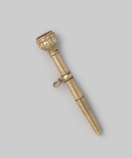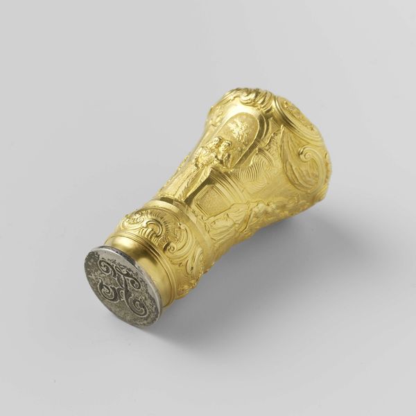 This broker's stick was made by Bernardus Leeking, likely in the early 1700s, from wood and silver. The handle, turned on a lathe, shows the natural grain of the wood, while the silver caps are finely engraved. The stick represents the authority of a broker, an important figure in the booming Dutch economy. As a go-between for merchants, a broker needed to project integrity and trustworthiness. The materials speak to this, combining the groundedness of wood with the gleam of precious metal. Consider the processes involved: woodworking and silversmithing, both highly skilled trades. The techniques showcase human ingenuity, in shaping raw materials into objects of status. The wooden handle is comfortable to hold, while the silver caps are cold and hard, lending the object weight and presence. In its own way, this unassuming object reflects the intense energies of global trade, and the many hands that made it possible. It reminds us that even the simplest artifact embodies complex social relations.