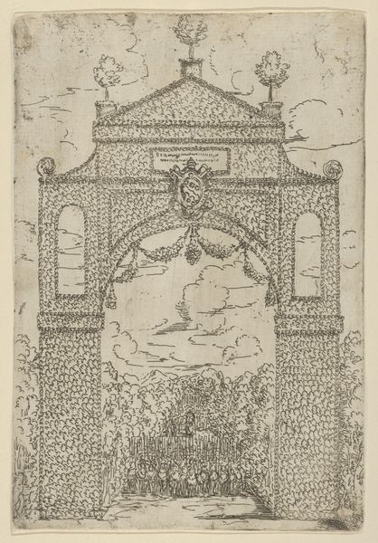 Editor: Here we have Giovanni Ambrogio Brambilla's 1579 etching, "The Firework Display Called 'Girandola' at the Castello Sant'Angelo in Rome." The sheer detail in this print, capturing the excitement of the spectacle and the sheer number of onlookers, is fascinating. What does this particular depiction of public festivity suggest to you? Curator: It is compelling how Brambilla's rendering draws attention to the material production of such spectacle. Consider the labor invested, from constructing the fireworks themselves, likely a highly specialized and dangerous task, to preparing the Castello as a stage. Then, the material consumption evident in the finished display itself, a transient explosion of light and sound that signifies power and wealth, only to vanish moments later. What social purpose did this planned obsolescence serve? Editor: I hadn't considered the labor aspect so directly. So, it’s less about the aesthetic achievement of the fireworks and more about… who made it possible, and what their involvement says about Roman society then? Curator: Exactly. Note the detail in the etching. Brambilla makes no attempt to hide the mechanisms, the scaffolds that supported the explosions. Look at how the crowds below are depicted: numerous, yet relatively uniform, as though consuming a product manufactured for them. It raises interesting questions about the intended audience and their role in perpetuating this power dynamic. Think of it as a visual document of consumption, orchestrated by the elite, dependent on many artisans. What would this image signify to someone outside of the city or even the country? Editor: So, the print itself, as a reproducible image, also democratizes or at least disseminates, this elite spectacle. Curator: Precisely. This allows a much broader audience to ‘consume’ the event. This connects the ephemeral fireworks display with tangible cultural production. This allows an analysis of the materials, techniques, and, crucially, the social hierarchies intertwined in the making of both the event and its artistic representation. Editor: That's a powerful reframing. Seeing the spectacle as just the final step in a complex production chain gives a much clearer perspective of societal consumption during the Renaissance. Thank you. Curator: It highlights that the value of such an image lies not only in its aesthetic qualities but also its inherent ability to expose systems of power.