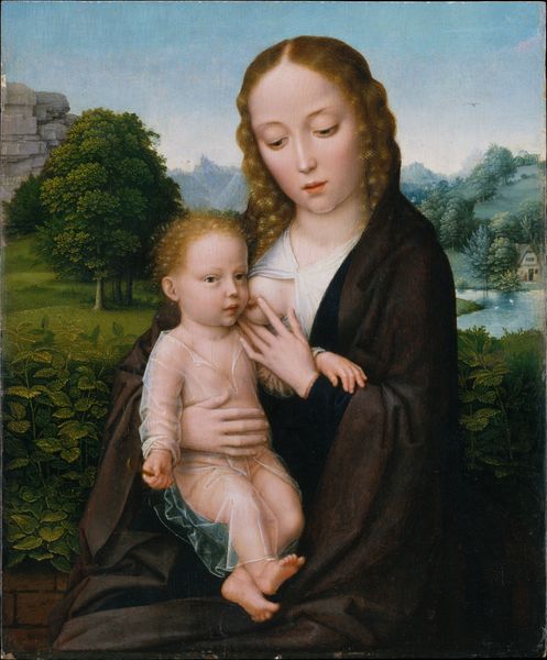 "A Rest During the Flight to Egypt" was painted by Gerard David, a Netherlandish artist, sometime before his death in 1523. The painting depicts a scene of maternal intimacy and refuge, amidst the Holy Family’s biblical escape from persecution. Mary, the mother of Jesus, pauses to breastfeed her child. During the 15th and 16th centuries, the role of women, particularly mothers, was idealized yet carefully circumscribed by social and religious norms. Motherhood was celebrated as a sacred duty, yet women's autonomy was often limited. David’s image can be viewed as both reinforcing the iconic status of Mary, while also quietly acknowledging the corporeal realities of motherhood. The image of the nursing mother has a profoundly humanizing effect. It collapses the distance between the divine and the everyday, offering a tender, accessible vision of holiness.