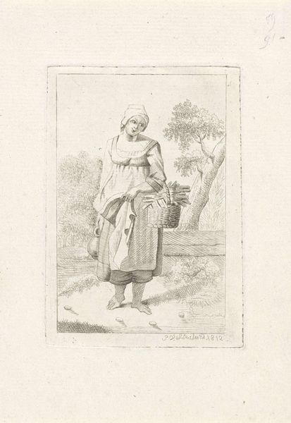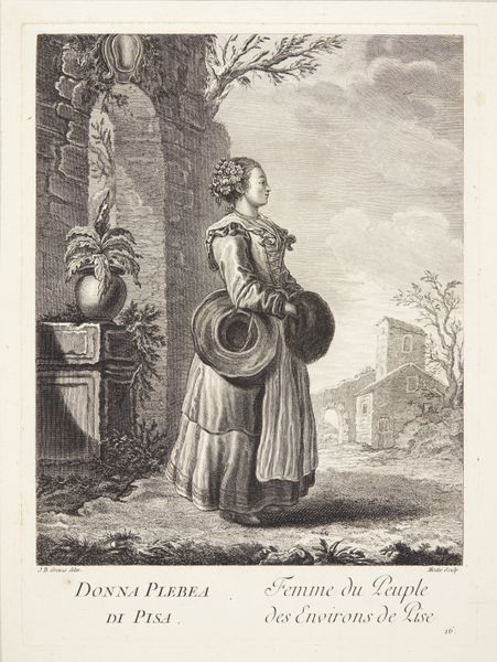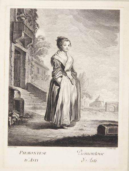 Pierre Etienne Moitte created this print of a Florentine country girl using etching, a technique that allows for detailed lines and textures. Notice the basket of melons. The melon is a symbol found throughout art history, often associated with fertility and abundance, echoing themes from ancient harvest festivals. The melon appears in Dutch still life paintings as a symbol of earthly pleasures, and its form is echoed in the rounded shapes of Renaissance Madonnas, symbolizing both motherly bounty and the sweetness of divine grace. Here, the girl's calm demeanor contrasts with the melon’s voluptuous symbolism. The image evokes a dreamlike connection between the everyday and the mythical, revealing how symbols resurface in new contexts, continually shaped by cultural memory. The symbol's journey is not linear but a cycle, a vibrant testament to its enduring appeal to the collective unconscious.
