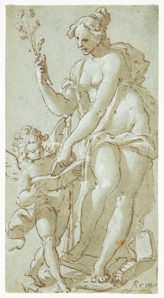 Pietro Dandini made this red chalk drawing of Venus and Paris in Italy, sometime in the late 17th or early 18th century. It shows Venus, the goddess of love, guiding Paris toward his fateful decision. A cupid sits nearby, representing the consequences of their actions. But this isn't simply a depiction of mythology. It's a product of its time, reflecting the values and concerns of the Florentine art world. Dandini, trained in the Florentine tradition, reveals his mastery of idealized human form, seen in his emphasis on musculature and soft shading. The art market during this time was controlled by academies, shaping artists' training and dictating subject matter. Mythology and idealized forms, like the ones seen here, were popular in the grand manner. To understand this drawing better, one might research the patronage system in Florence at the time, and the role of the academy in promoting certain styles and subjects. Art history is not just about aesthetics; it's about understanding the social and institutional forces that shape artistic production.