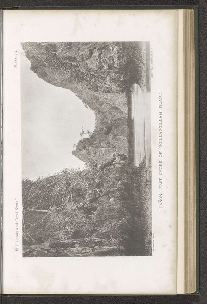 Curator: Today, we are examining "Gezicht op Storm island in Fiji," or "View of Storm Island in Fiji," a photograph taken by W. McM. Woodworth before 1899. Editor: My immediate reaction is of serene loneliness. The stark contrast of light and shadow, particularly the silhouetted trees against the open sky, evokes a contemplative mood, a quiet stillness before… well, perhaps before a storm. Curator: I agree that the formal composition, its emphasis on tonal gradations achieved through the Pictorialist technique, indeed promotes a feeling of quiet contemplation. The contrast emphasizes a division within the photograph itself, land and sea, light and dark, reflecting, perhaps, the structure of island life. Editor: Yes, but consider the date, predating 1899, and its ties to Orientalism. This isn't just an innocent landscape. Woodworth, like many photographers of his time, likely aimed to exoticize and claim a colonial space through the act of documentation. Storm Island, isolated and framed, becomes an object for Western consumption, a display of imperial reach. Curator: Precisely. Through Pictorialism, Woodworth elevates a potentially ethnographic study into something aesthetically… removed. He prioritizes artistic effect. This "artistic effect," created with manipulation of the photograph during development, romanticizes and obfuscates socio-political truths. Note the way the forms of the palms lean to one side and echo each other – like strokes of ink. The structure has its own meaning that way. Editor: And this very act, prioritizing aesthetics, becomes problematic. He overlooks the actual inhabitants and their relationships with the land, rendering them invisible. "Storm Island" then, in his framing, loses its complex indigenous narratives, becoming merely a picturesque scene viewed through a colonizer's lens. This scene, as peaceful as it appears to the casual observer, only continues cycles of violent appropriation and forced submission. Curator: Certainly, your point emphasizes the limitations of formalism itself, but you help expose it in doing so! You’ve shed needed light on this beautiful image by illustrating its capacity to mask painful truths. Editor: I find it striking that unpacking layers can illuminate what is intentionally made less evident or removed to meet skewed world views of others.