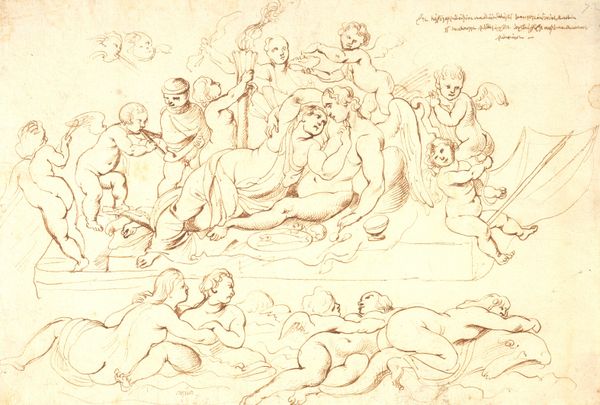 This drawing depicts Diana’s toilette, showing her reclining amidst her nymphs and symbols of the hunt. Diana, goddess of the hunt, represents the untamed wilderness, yet here, she is in a moment of serene vulnerability. The bow and quiver are not merely hunting tools. They are symbols deeply tied to Diana's identity and power. We find the bow echoed across time, from the archer constellations of ancient star maps to Cupid, playfully piercing hearts. Here, the bow lies dormant, a temporary pause in the eternal chase. It's a potent, latent energy. Consider how such symbols of power, so overtly masculine, become entwined with the feminine form. This isn’t merely aesthetic; it delves into the depths of our collective unconscious, where power and beauty intertwine, sparking tension and fascination. The image reminds us that symbols do not evolve in a linear fashion but rather resurface and are continually reinterpreted.