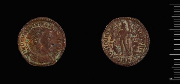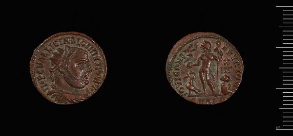 Editor: This is a Follis coin of Licinius I, created in Antioch. It’s such a tangible piece of history, isn't it? It makes you wonder about all the hands it passed through. What stories do you think this little coin could tell? Curator: Ah, imagine the journeys this humble coin has undertaken. Each scratch, each bit of verdigris whispers tales of empires rising and crumbling. I see Licinius, a man grasping at power, his image stamped onto metal, a desperate bid for immortality. Editor: Immortality through currency, that's a thought! Curator: Indeed! But look closer – beyond the emperor's profile, there's a vulnerability. It’s like a shadow self, laid bare by the passage of time. What do you make of that? Editor: A shadow self... I never considered that. So, it’s not just about power, but maybe the weight of it too? Curator: Precisely. Maybe it’s a reminder that even emperors are, in the end, just fragile mortals. Editor: I’ll never look at a coin the same way again!