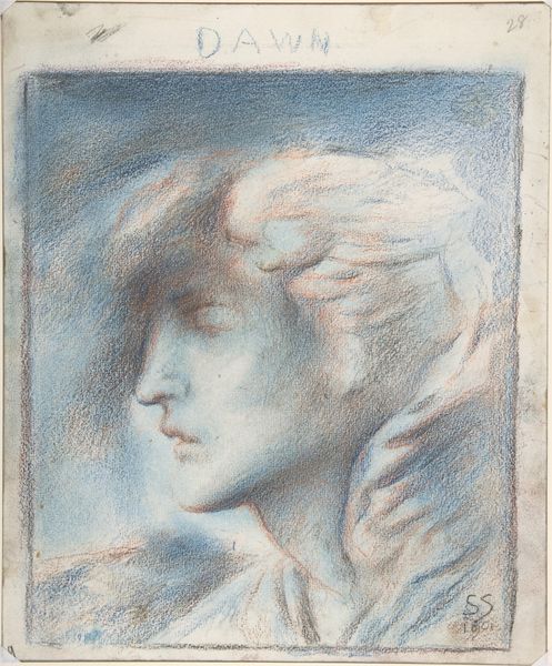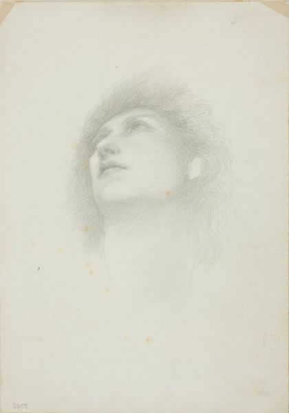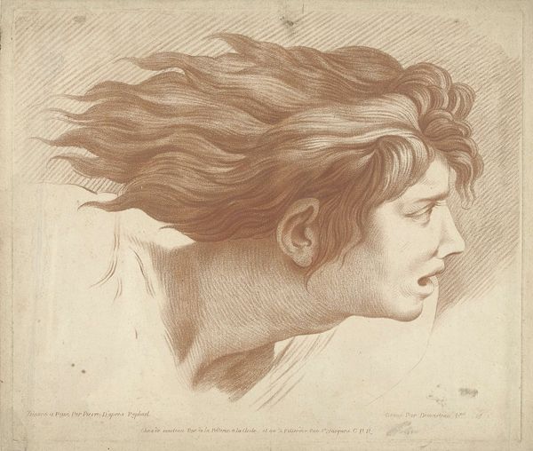 Pierre-Paul Prud’hon created “Head of Vengeance” using black and white chalk on blue paper during the late 18th and early 19th centuries, a period marked by the French Revolution and subsequent social upheaval. The drawing captures a figure, likely female, in a moment of intense emotional arousal. Her eyes are wide with an almost manic energy. This piece was created during a time when the roles of women in society were being questioned. It's interesting to note the contrast between the subject’s delicate features and the violent emotion she embodies. Is this a reflection on the suppression of women's anger, or is it indulging in a stereotype of female hysteria? By imbuing this figure with such raw emotion, Prud’hon challenges the traditional, passive representations of women in art. While the work hints at the complexities of female identity, the lack of further context leaves much open to interpretation. It serves as a reminder of the emotional lives, often overlooked or suppressed, of women during this tumultuous period.