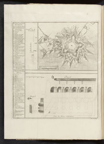 Editor: Here we have Jan van Vianen's engraving, "Slag bij Ramillies, 1706" from 1706, at the Rijksmuseum. It’s incredibly detailed; there's a real sense of organized chaos. What stands out to you in this work? Curator: Formally, I'm drawn to the strategic organization of visual information. Observe the composition—the engraving is compartmentalized, with a bird's-eye map, a depiction of the battle, and textual explanations. Note the interplay of the visual and the textual: how do these elements construct meaning within the overall design? Editor: I see, so it's not just about representing the battle itself? Curator: Precisely. Consider the use of line: notice the clear, precise lines defining the map’s boundaries and the battle scene. The density and variation of these lines create tonal contrasts, suggesting depth and intensity. How does this controlled linearity contribute to the engraving’s aesthetic and its persuasive power as historical documentation? Editor: So the very act of engraving, the lines themselves, add meaning. I hadn't thought of that. Is the intention to make something informative, but also… orderly? Curator: Yes, the emphasis on structure, rather than emotion, reinforces the period's striving for reason. Also, observe the placement of text—French on one side, Dutch on the other, literally framing the imagery. The language reinforces intended viewership for distinct audiences. What impact does this have? Editor: I suppose it positions the viewer within a particular perspective. Okay, I’m beginning to see how the artwork’s impact goes beyond just depicting the battle. Curator: Exactly. It demonstrates how form itself functions as a carrier of meaning. Hopefully, the experience changes your interaction with art, as well.