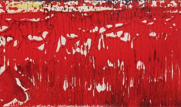 Gerhard Richter made this painting, Ice, with oil on canvas. The red in this painting is amazing. It’s a really bold statement, but it also feels kind of raw and exposed, like someone took a brush full of paint and just went for it. I find myself drawn to the way the paint drips and flows, especially where the red meets the yellow. It’s like the colors are having a conversation, mixing and merging, but also retaining their individuality. There's a sense of movement and energy, like something is constantly shifting and evolving. I’m reminded of Helen Frankenthaler and the way she stained her canvases. Both artists are interested in process, but in different ways. Frankenthaler was interested in the relationship between color and canvas, while Richter seems more interested in the act of painting itself. Ultimately, the beauty of this piece lies in its openness, its willingness to embrace ambiguity.