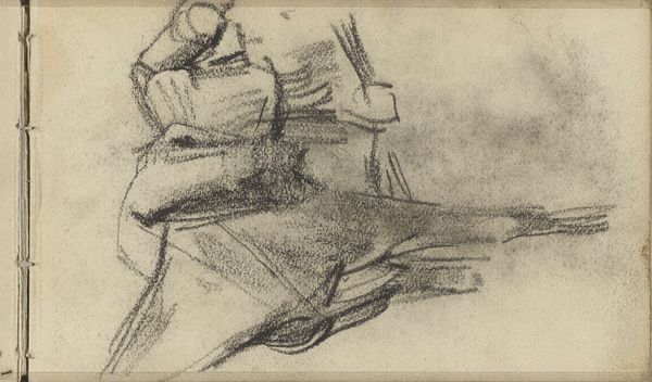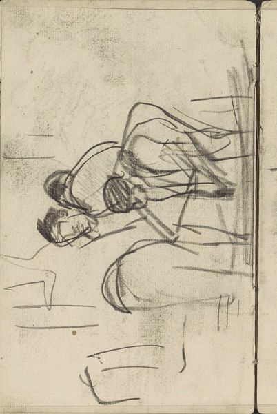 Editor: So, this drawing, “Zittende figuren,” or "Seated Figures," by George Hendrik Breitner, was done around 1883 to 1885. It looks like it's pencil on paper, and has this immediate sketch-like quality, quite raw. What catches your eye about this piece? Curator: For me, it's the very unfinished quality, as you pointed out, that is incredibly powerful. Breitner was working in Amsterdam at a time of enormous social upheaval, and this sketch offers a glimpse into the lives often ignored or romanticized in academic painting. Editor: How so? It's hard to decipher exactly what’s going on. Curator: Exactly! It resists easy consumption. The lack of detail forces us to consider what we bring to the image. Are they workers, resting from some labor? Are they sex workers, waiting for clients? Are they simply poor people? By not clarifying, Breitner confronts the viewer's own assumptions and biases. Think about how the portrayal of marginalized figures impacts and reflects broader social justice movements. Do you see the interplay between visibility and vulnerability in this work? Editor: I see what you mean. It is definitely not a posed portrait, it feels like a candid glimpse, perhaps of people experiencing some sort of precarity. I guess I expected something more…finished? Curator: And what does "finished" mean in this context? Breitner's choice to leave it unfinished makes it a modern work of art, focused on a real experience and confronting societal inequalities of the time, not just a prettified image. What is resolved versus unresolved and what this potentially means for the interpretation of gender and identity are points of focus. Editor: I hadn’t thought of it that way before. It's not just about what's *in* the drawing, but also what is *not* there. I'll definitely keep that in mind moving forward. Curator: Precisely. And it makes us think critically about representation, about who gets seen and how, even in the art world today.