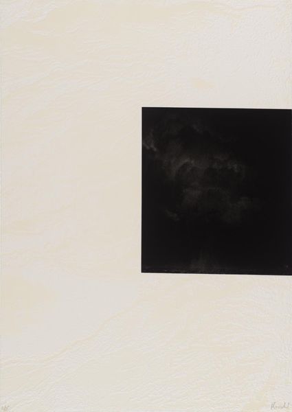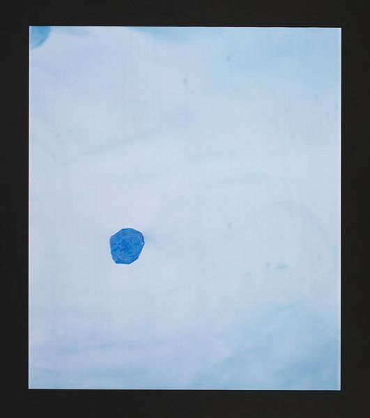 Curator: Before us is Lawrence Daws' screenprint, "Pacific Eye," held in the Tate collection. Its dimensions are roughly 610 by 613 millimeters. Editor: It's rather disquieting, actually. That immense, fleshy form dominating the churning blue… It evokes a sense of submerged power. Curator: Indeed. Daws manipulates perspective, juxtaposing the macro—that fleshy form you mention—with the implied vastness of the ocean below. The abrupt cropping only heightens the tension. Editor: The hand, or the suggestion of one, appears almost godlike, looming over the water. Is it benevolent, or threatening? The eye shape is ambiguous, perhaps even lunar. Curator: Precisely. The artist uses negative space to imply meaning, asking us to consider how we interpret form and void in equal measure. Editor: It’s a memorable image, one that resonates with primordial fears and perhaps a reverence for the unseen forces of nature. Curator: A striking piece that showcases Daws' exploration of perception and the subtle manipulation of compositional elements.