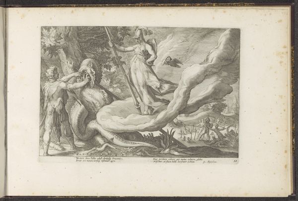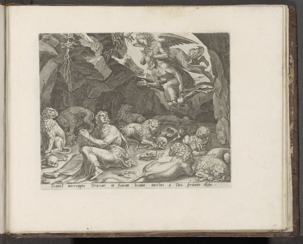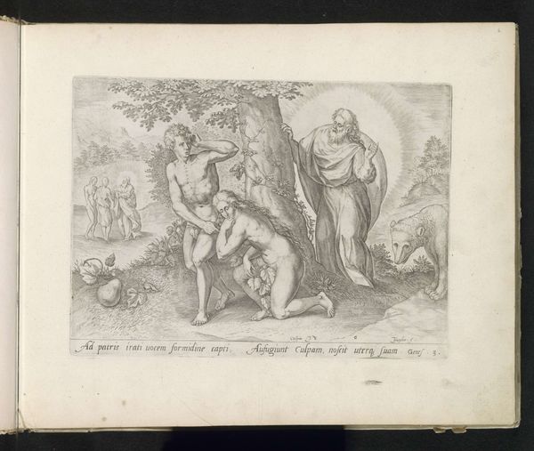 Curator: This engraving from 1585, “Job on the Dunghill,” is by Jan Snellinck, now in the collection of the Rijksmuseum. Editor: My immediate reaction is one of stark melancholy. The composition is dominated by very fine, almost obsessive linework which, despite its small size, makes it a profoundly affecting image. Curator: Yes, the precise engraving captures Job's suffering through carefully considered symbolism. Note his seated position on the dunghill – it represents his reduced status, his humility. Editor: I agree, the composition certainly underscores the themes of suffering and isolation. The textures are incredibly rendered, especially on the 'dunghill' itself, but do you think it elevates the misery by the extreme fineness? Curator: Not elevates, perhaps amplifies it. Consider the background figures. Their reactions encapsulate various stages of grief and pity, they function as symbolic representations of compassion or lack thereof. Note too how Job's gaunt figure and uplifted hands emphasize a physical and spiritual supplication – a link back to the Old Testament narrative. The cloud might even hint at a moment when there's a sense of judgement about to be passed down from the heavens. Editor: The clouds draw attention by creating a shadow on part of the backdrop – but overall I am still captivated by Snellinck’s detailed linework as a compositional device. See how it captures every muscle, every furrowed brow, every tear? And think about the implications of using such delicate tools for such graphic and desolate ends! Curator: Exactly. The symbolic weight and the precise rendering combine to deliver a powerful message about faith, suffering, and the human condition, a narrative that remains potent across time. Editor: A rather morbid visual experience today, but also quite beautiful in the way Snellinck's formalism enhances, rather than overwhelms, its affecting themes.