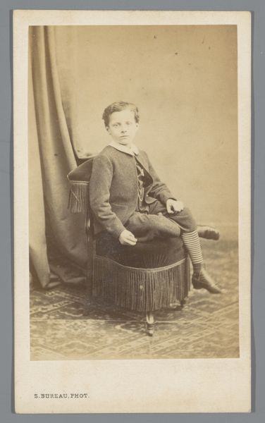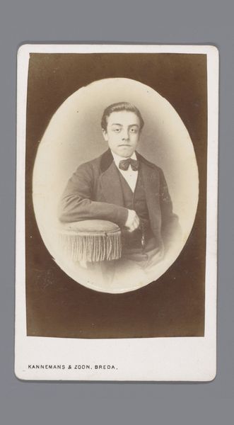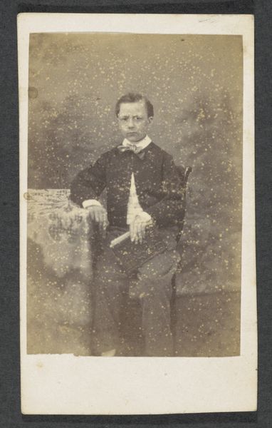 J. Korsten created this portrait of an unknown man from the Marmelstein family, using a photographic process. The sepia tones lend a nostalgic and formal air. The composition centers on the sitter, whose relaxed pose creates a dynamic interplay between the sitter’s body and the simple chair. The artist’s strategic use of light and shadow enhances the subject's features and clothing. This draws us to consider how the photograph operates as a sign. The man’s clothing and posture function as signifiers, communicating status, profession, and personality. Ultimately, this portrait invites ongoing interpretations. The image is not merely a static representation but an active participant in a cultural and philosophical discourse around representation and identity.