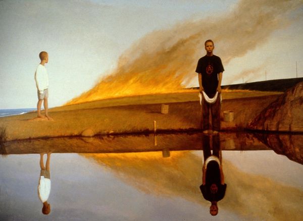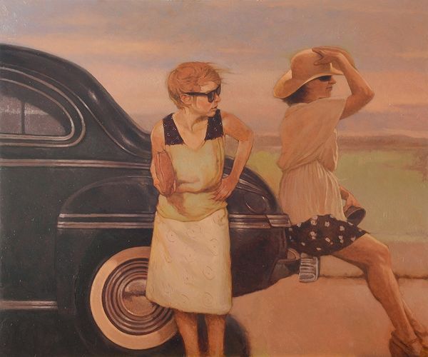 Bo Bartlett painted this, seemingly straightforward, scene of a car crash and a loving embrace. But, it has the appearance of a dream. There's a commitment to description and also a strange, slightly-off, quality of light. It’s how the paint describes the scene and builds the atmosphere of something real and unreal. The texture of the overturned car is so palpable, you can almost feel the rough scrapes and dents, each rendered with care. Then there is the light and color, particularly how the warmth of the distant field gives way to the figures in the foreground. Look at the embrace of the two figures, how Bartlett blurs the lines between them, making it almost impossible to distinguish one from the other. The merging of two people into one feels like the core of the piece. It reminds me of Philip Guston, how he painted the familiar in a way that feels both comforting and deeply unsettling. Just like Guston, Bartlett shows us that art isn't about perfection, but about embracing the messy, complicated beauty of being human.