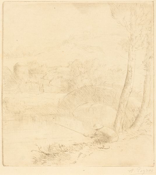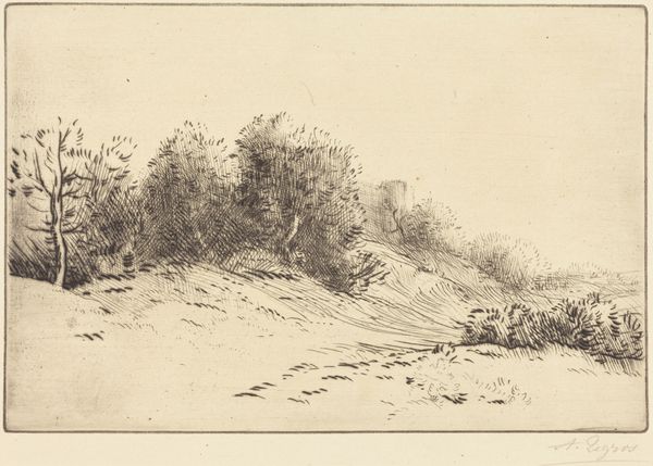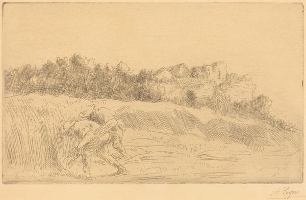 Alphonse Legros created this etching, titled 'My Farm' which presents a serene rural landscape. Legros was deeply influenced by the social realism of 19th-century France. A time when artists sought to depict the lives of ordinary people and the realities of the working class. The title suggests a personal connection to the scene; however, Legros spent much of his career away from rural settings, teaching in urban environments. How might this distance shape his vision of rural life? The farm is shown as a site of simplicity and refuge. Yet, this vision obscures the labor and socio-economic struggles inherent to agricultural life. Legros develops a narrative of pastoral escape that reflects a longing for a simpler past, while omitting its complexities. I wonder what it means to claim ownership over a space that is both idealized and distanced from the artist's lived experience.