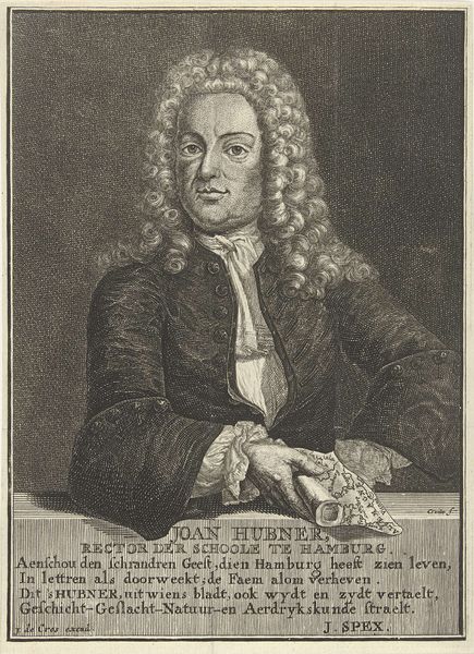 Pieter Tanjé made this portrait of Willem Vink using engraving, a printmaking technique that requires great precision. Engraving begins with a metal plate, usually copper. The artist uses a tool called a burin to carve lines directly into the plate's surface. These lines create grooves that will hold ink. The plate is then inked, and the surface wiped clean, leaving ink only in the engraved lines. Finally, damp paper is pressed onto the plate, transferring the ink and creating the print. This process demands careful planning and skilled execution. The depth and spacing of the lines determine the tones and textures of the image, as you can see in the delicate rendering of Vink’s face and wig. The controlled lines and meticulous detail give the portrait a formal, almost scientific quality, befitting Vink's profession as a lecturer of anatomy and surgery. The labor-intensive nature of engraving contrasts with the mass-producible nature of printmaking. The portrait, then, exists in a fascinating tension between craft and industry.