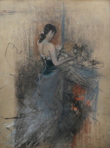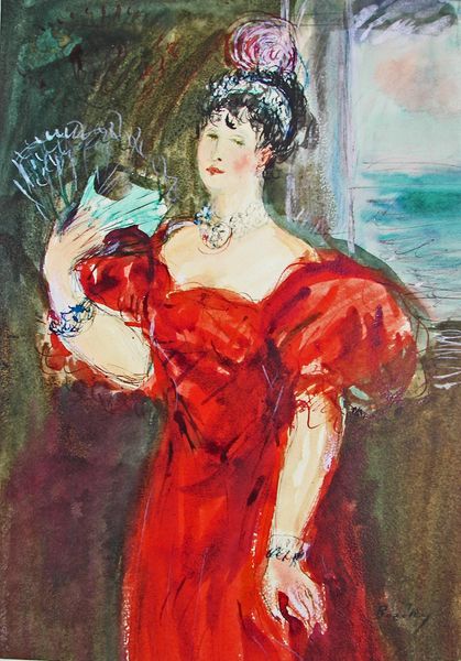 Maria Bozoky created this watercolor image of the pianist Annie Fischer, although the date of its making remains unknown. The setting is a private interior, and the overall feel is one of artistic and cultural refinement. The image speaks to the peculiar situation of women in the arts, as the sitter is pictured both as a performer and as an object of contemplation. The mirror reflects a second likeness of her, thus underlining the importance of her image as separate from her musical profession. This was a time when it was becoming more acceptable for women to perform in public, but in which their beauty and presentation were still vitally important to their recognition. Further research might look at the concert programs of the time, or even conduct interviews with musicians, in order to better understand the institutional pressures experienced by performers such as Annie Fischer. With a clearer sense of social context, we can more deeply appreciate what the artwork means.