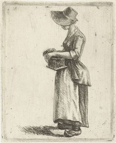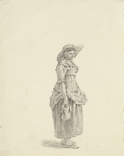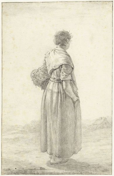 Abraham Johannes Ruytenschildt made this drawing of a standing woman with a bundle of wheat using pen in brown and red ink. Dating from the late 18th or early 19th century in the Netherlands, this image speaks to the changing social landscape of the time. Agriculture was the dominant sector, yet the Industrial Revolution was beginning to take hold, slowly reshaping the rural economy. The woman carrying wheat evokes classical images of agricultural bounty, but here we find a faceless figure, perhaps suggesting a shift in the perception and status of rural labor. The drawing’s existence as a study rather than a finished work gives us insight into the institutional art world, then dominated by academies and the teaching of drawing. To fully understand this work, we can turn to archives of economic history, studies of agrarian society, and records from art academies to understand how the artist situates himself within this changing world. Art doesn't exist in a vacuum; it is deeply embedded in the fabric of social and institutional life.