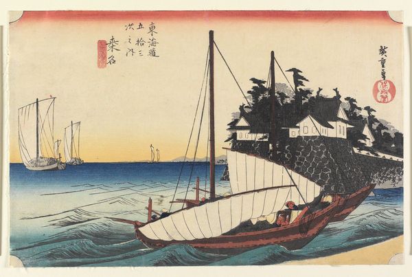 Katsushika Hokusai created this woodblock print, "Kijkend naar de zonsondergang bij de Ryogoku brug vanaf de Onmaya oever", with ink and color on paper. The traditional Ukiyo-e printmaking process involves carving a separate block for each color, and requires meticulous registration to align them perfectly. Here, the flat planes of color and bold outlines emphasize the graphic quality of the image. Notice how the water’s texture is achieved through simple, repeated lines, a testament to the skill required to carve such detail into wood. The print is more than just a pretty picture, it also speaks to the labor involved in its production, and to the circulation of images in Japanese society. This wasn't just a solitary artistic act, but a collaborative process involving designers, carvers, printers, and publishers, each contributing their expertise. The print's success depended on the efficient division of labor and the standardization of production. By appreciating the materials, making process and context, we can see beyond the image itself, and understand the cultural and economic forces that shaped its creation.