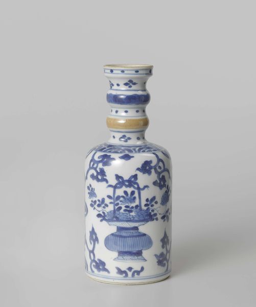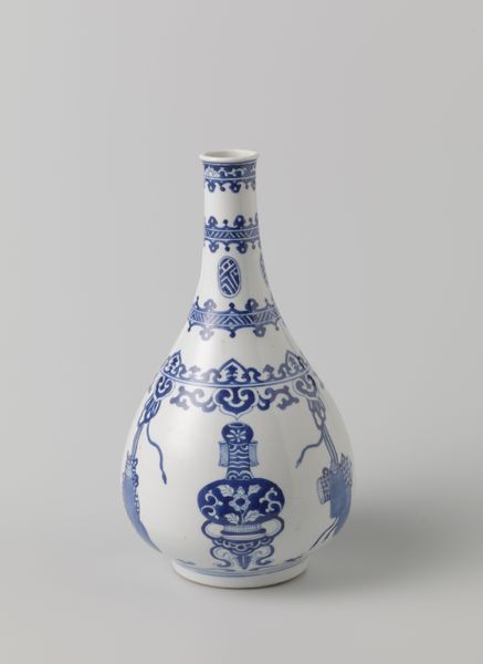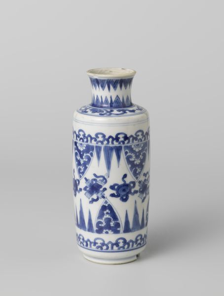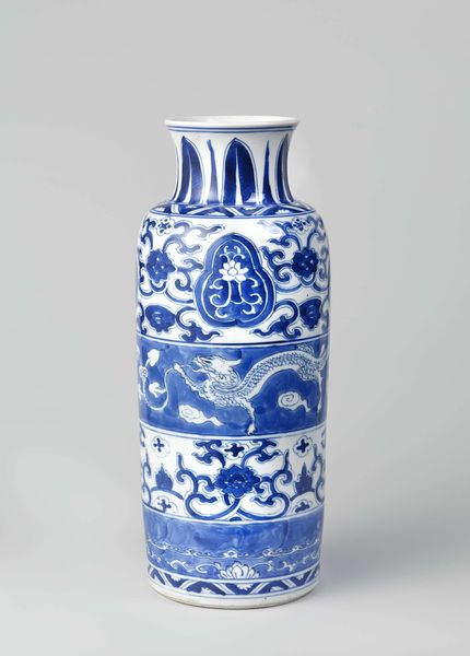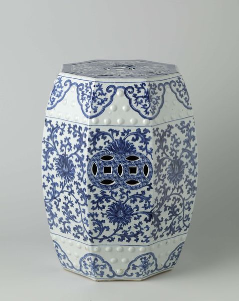 This Ovoid covered jar with flower scrolls in lappet borders was created by an anonymous artist. The jar is a testament to the intricate beauty and cultural significance of ceramics. At first glance, the blue and white floral patterns evoke a sense of traditional beauty. However, the anonymity of the artist invites us to consider the complex layers of identity, labor, and cultural exchange inherent in its creation. Consider the historical context in which this jar was made; the labor and skill required to produce such a piece, and the social dynamics at play. The absence of a known artist raises questions about authorship, value, and the recognition of individual contributions within a larger system of production. Does the anonymity invite us to consider collective cultural identity? The jar invites us to contemplate the stories of craftsmanship, tradition, and the human touch, reflecting broader societal issues of identity, and cultural heritage.
