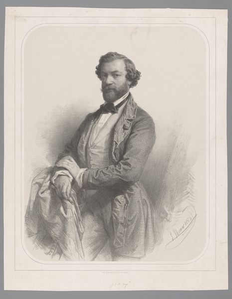 Editor: Here we have Alphonse Farcy's "Portret van Félix Pyat," an engraving from 1849. It has a somewhat severe tone. I mean, I'd hate to be on the wrong side of this guy, just based on his portrait. What do you see in this piece? Curator: This image, beyond being a simple portrait, speaks volumes about the political climate of 19th-century France and the role of individuals within social upheaval. Félix Pyat was a socialist journalist and playwright deeply involved in the revolutions of 1848. The somewhat stern expression you observed can be seen as a reflection of the political struggles he faced. Do you see how the artist uses realism not just to capture likeness, but perhaps to convey Pyat's convictions? Editor: That makes sense. I guess I was just seeing the face, not the story behind it. So, the artist is trying to make a statement about his politics, but is he in support of them? Curator: Exactly. Farcy's work places Pyat within a larger conversation about revolution and social reform, suggesting he sees Pyat's face, or at least the idea of his politics, as having power. The engraving itself, as a medium, also played a critical role in disseminating political ideas and imagery during that era. Can you imagine the impact an image like this might have had on the working class at the time? Editor: So it's like visual propaganda? Curator: It participates in the popular dissemination of political imagery. I find myself reflecting on how portraiture can actively shape public perception and contribute to the narratives surrounding political figures, even now. Editor: I see this work in a totally different way now! Thanks for providing all this context.