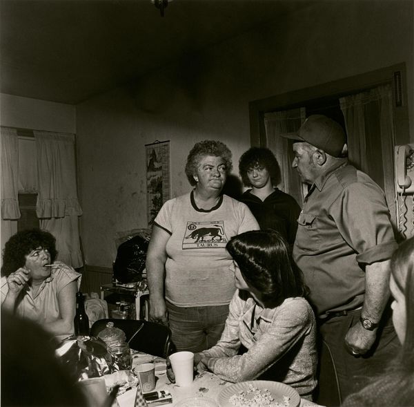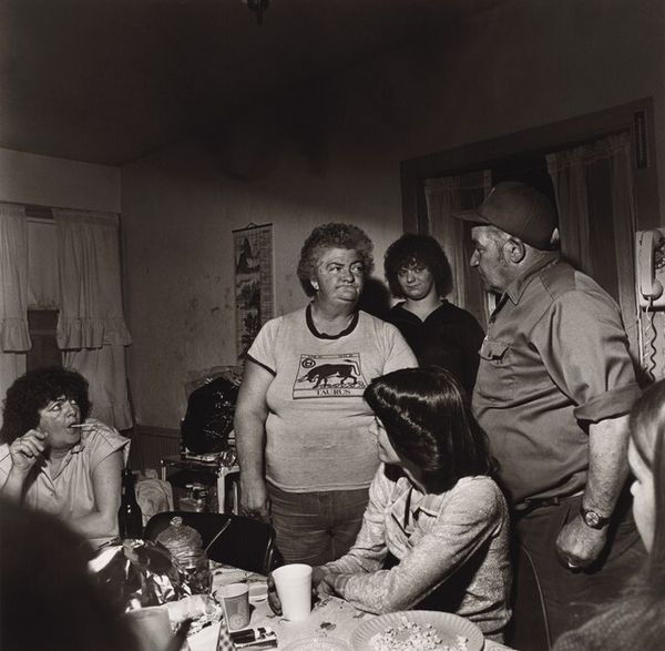 Larry Fink made this black and white photograph, “Pat Sabatine's Eighth Birthday Party, Martins Creek, Pennsylvania,” somewhere around 1949. Fink's work often finds beauty in the everyday, turning the mundane into something almost mythic, and it’s clear that he’s not trying to hide the grit in this photo. The textures are incredible, aren't they? The graininess of the film gives everything a sort of tactile quality. You can almost feel the humidity of the evening, the rough fabric of their clothes. The light, too, is remarkable. It’s harsh and unflinching, casting deep shadows that seem to swallow everything whole. Look how the light flares around the edges, creating a halo effect. This sense of raw honesty reminds me a bit of Diane Arbus. Fink, like Arbus, invites us to see the beauty and complexity in ordinary life. It's an ongoing conversation, one that celebrates the messy, imperfect, and utterly human experience.