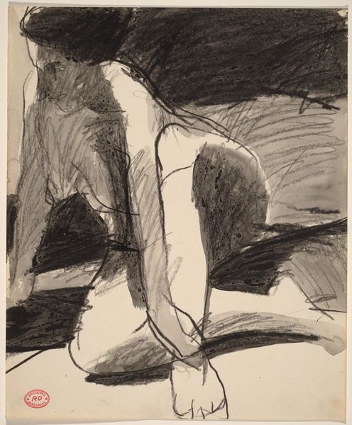 Editor: This is an ink drawing by Richard Diebenkorn, dating sometime between 1955 and 1967, titled "Untitled [seated nude with left elbow on knee]". I'm struck by how raw and gestural it is, but I also see a lot of tension in the figure's pose. How do you interpret this work? Curator: What strikes me is how this piece intersects with the larger narrative surrounding the male gaze and the representation of the female body in art. Diebenkorn made this drawing during a period of intense artistic and social upheaval. Considering the gaze, does the abstraction somehow challenge or perpetuate the objectification inherent in the nude form? Editor: That's a really interesting point. I hadn't thought about the level of abstraction in relation to objectification. So you’re suggesting that by not rendering a perfect, idealized form, it shifts the power dynamic somehow? Curator: Precisely! Think about the societal expectations placed on women, and how those expectations are often reinforced through art. The gestural quality disrupts a polished, consumable image. We must ask: Whose gaze is being represented? Is the artist grappling with the male gaze, or complicit in it? Editor: That really opens up the conversation. I was so focused on the aesthetic qualities, I hadn't fully considered the sociopolitical context. The way he's used the ink is still so beautiful, even when you consider it in this perspective. It invites speculation rather than asserting a concrete vision, perhaps. Curator: Exactly, it’s this interplay between form and content, between the aesthetic and the political, that makes the work so compelling and so relevant. We must challenge not only the imagery itself, but our expectations. I appreciate your enthusiasm, this has provided me with new questions, as well.