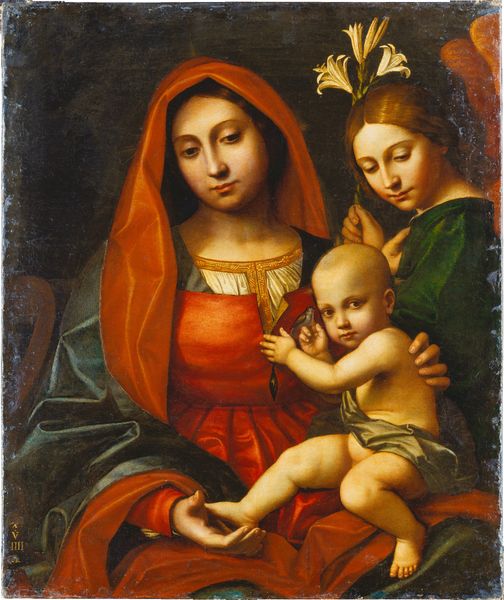 Domenico Beccafumi created "The Holy Family with Angels" sometime in the 16th century. As the Italian Renaissance reached its apex, artists grappled with evolving notions of family, spirituality, and individual identity within a rapidly changing society. Beccafumi's rendition of this well known scene offers a perspective on the roles within the family unit. The Virgin Mary is depicted with a gentle, introspective gaze, embodying both maternal love and spiritual devotion. Meanwhile, Joseph watches over them, a patriarch in contemplation, anchoring them in a complex world. The angels add a layer of ethereal beauty, perhaps symbolizing divine grace. However, Beccafumi subtly disrupts traditional representations. He infuses the scene with a sense of human vulnerability. The Virgin's downcast eyes and the soft, muted tones evoke a sense of quiet contemplation. This infuses the holy figures with an emotional depth that resonates with lived experience. Ultimately, Beccafumi's "The Holy Family with Angels" invites us to reflect on the intersections of faith, family, and personal identity, reminding us of the human dimensions inherent in sacred narratives.