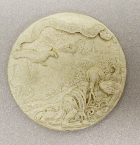 Andrea Mantegna created "The Pelican in her Piety" using engraving in the 15th century. The image presents a pelican mother feeding her young, all enclosed within an elaborate, decorative border. The composition is striking. The pelican's outstretched wings create a semi-circle, drawing our eyes to the chicks nestled below. Mantegna’s precise lines and attention to detail are remarkable for the medium, lending the scene a sense of depth and texture. The pelican is a symbol of sacrifice and redemption. The formal structure of the print—the central placement of the pelican and the circular embrace of her wings—emphasizes this symbolic weight. This visual arrangement is not merely aesthetic. It reflects broader philosophical concerns about selflessness, and the giving of life, themes that resonate with Christian beliefs. The print invites us to explore the intersections between form and meaning. How the visual structure reinforces the cultural significance of the pelican, prompting ongoing interpretations of sacrifice and devotion.
