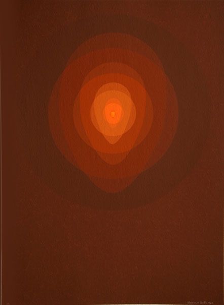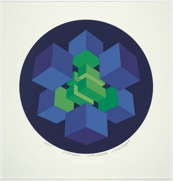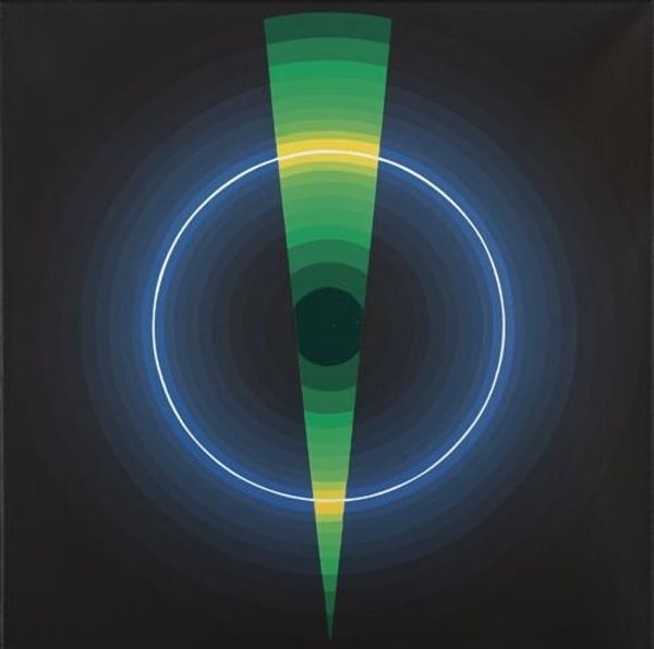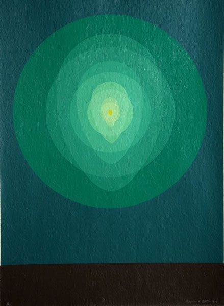 Editor: Here we have Clarence Holbrook Carter's "Green Mandala," an acrylic on canvas created in 1969. I find it quite calming, almost meditative, with that radiating green pattern against the dark background. What do you see in this piece? Curator: This piece resonates deeply with the social and spiritual quests of the late 60s. The mandala form itself, borrowed from Eastern traditions, speaks to a search for inner peace and harmony, values that were counterposed to the turmoil of the Vietnam War era and the fight for civil rights. Can we consider Carter’s work in conversation with contemporaneous feminist explorations of geometric abstraction by artists such as Agnes Martin and Emma Kunz? The use of hard-edged painting and color-field techniques reduces the visual language to its most fundamental aspects, stripping the geometry of all references but itself, thus, focusing on its capacity for meditative activation. Does that reading influence how you view its composition? Editor: I hadn’t considered it in that light. I was mainly drawn to the aesthetic of it, the soothing color palette. Curator: Right, but the very choice of that palette, those calming colors, also needs contextualization. What might "green" symbolize in a decade marked by both environmental awakening and pervasive social unrest? Can we think about “Green Mandala” not just as an individual artistic endeavor, but also as a statement about the necessity for healing, reflection, and the interconnectedness of all things during a period of great social divide? Editor: So, it's less about pure abstraction and more about a commentary on the search for peace? Curator: Exactly. Abstraction here doesn’t exist in a vacuum. Carter is in conversation with his contemporaries, responding to global issues and engaging with philosophical ideas of the time. How do you feel that affects your appreciation of the artwork? Editor: I think it gives it a greater sense of purpose and makes me realize how much context matters when trying to interpret a work of art. Curator: Absolutely, and hopefully it encourages a dialogue around similar themes of individual agency, social change, and artistic response today.