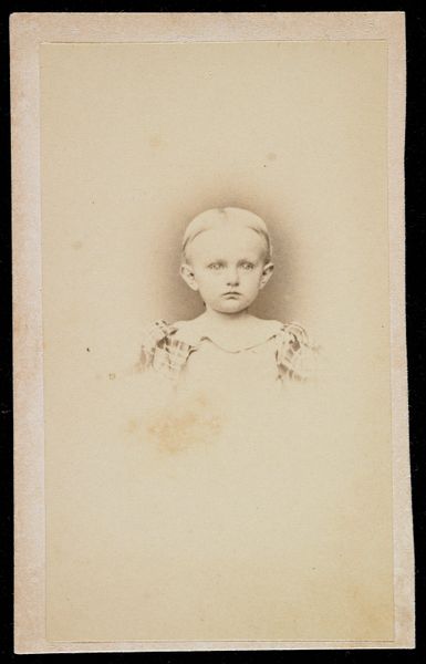 Curator: What a compelling image. This gelatin silver print, “Portret van een onbekend meisje,” was taken by Bernardus Bruining, likely sometime between 1880 and 1890. Editor: It’s strangely ethereal, isn't it? The focus is soft, almost dreamlike. There's a vulnerability to her gaze that immediately pulls you in, though the overall impression is sepia tinged and old-fashioned. Curator: I find the very anonymity fascinating, the “unknown girl.” Photographic portraits at this time became newly accessible to a rising middle class, beyond the elite. They speak volumes about aspiration. Editor: It's true, but think about the societal constraints on young girls then. Was she participating in her self-representation or simply an object to be framed and consumed? Curator: That’s a vital point. This studio portrait is certainly mediated. But within those limits, might we consider her agency? Note the pearl necklace, perhaps a marker of familial wealth or a performative gesture of class identity? Editor: Perhaps. Or maybe the pearls were selected for her, another signifier chosen to construct the image. To analyze this portrait we need to unpack not just her visual representation but the entire culture of portraiture, who had access, how poses were chosen. The photographer, the location of the studio, it all signifies social status and artistic choices that impact how she’s read. Curator: Precisely! The commercial element is also essential. Bruining was a professional photographer in Arnhem; these photographs functioned as commodities in a rapidly developing visual culture. Families paid to memorialize themselves in specific ways. The softness of focus you observed may have been, itself, a fashionable aesthetic, linked to notions of grace or delicacy that were highly prized for young girls at that time. Editor: The questions this image raises extend far beyond the aesthetic then; what she wears, how she looks, these are reflections of complex negotiations that reflect social structures and power dynamics. The act of creating and possessing her photograph shaped her existence in subtle but concrete ways. Curator: Yes, the way this object has become historicized, landing here in the Rijksmuseum and prompting us to look anew at identity, agency, and the performance of the self, it makes me think we owe this unknown girl so much. Editor: Agreed, and that lingering ambiguity of a name long forgotten offers a potent reminder of the power imbalances, but also of how resilient some faces, and the stories they represent, can be.