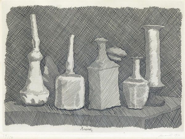 Curator: The "Bottle and glass vases and crystal faceted, found in Pompeii," print by Giovanni Battista Piranesi, offers us a fascinating glimpse into ancient Roman material culture. What strikes you about this image? Editor: I’m intrigued by the precision of the engraving, especially considering they are depicting glass, which is typically more free-flowing. How does that relate to the piece's overall meaning? Curator: Excellent point! Notice the sharp lines and detailed faceting of the crystal goblets. Piranesi isn’t just documenting; he's highlighting the labor involved in shaping these materials. The process of transforming raw materials into luxury goods becomes a focal point, reflecting Roman society's consumption and the skill of its artisans. What do you make of the inclusion of both glass and crystal? Editor: Maybe the contrast shows different levels of craft or wealth in Pompeii? Curator: Precisely. Crystal, requiring more skilled labor for cutting and faceting, likely signified a higher status. Think about the social implications of access to these objects. Who would have owned these, and what did owning them signify? Editor: I guess only wealthy Romans would be able to acquire those. That puts the spotlight on the economic stratification of the city, right? It almost feels like the artist is trying to freeze that moment for later observers. Curator: Exactly! Piranesi uses his engraving to document a particular moment in material history and comment on the production and consumption patterns of a society frozen in time. What began as simple illustration work of found vessels blossoms into deep societal reflection! Editor: I hadn't thought about the work as a means to tell an entire story, or to bring socioeconomic structures into sharper relief. That definitely makes the picture more rich for me! Curator: Indeed. Looking closely at the process and the materiality opens up a new level of interpretation that moves it beyond mere historical artifact!