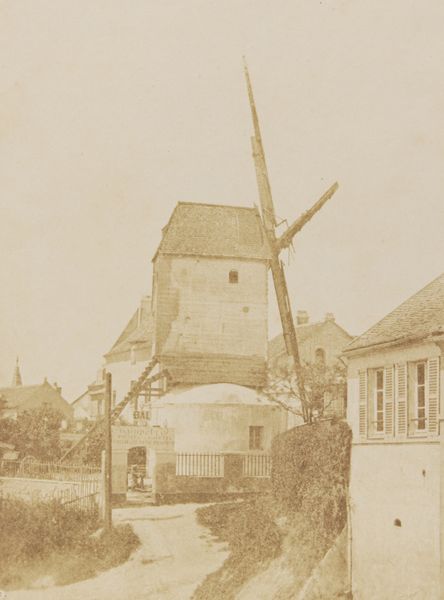 This photograph is a reproduction by A. Nissen of a painting by C.L. Lesjen, depicting a Dutch landscape with a windmill and bleaching field. It's intriguing to see how photography engages with painting here. The photogravure process, used to make this print, involves etching an image onto a metal plate and then using it to create an impression on paper. This was a popular method for reproducing artworks, offering a relatively inexpensive way to circulate images widely. Looking closely, you can see the textures and tones that the photogravure process is capable of rendering; the subtle gradations of light and shadow. But beyond the technical aspects, this image evokes a sense of labor and industry tied to the Dutch landscape. Windmills were essential for power, while bleaching fields were vital for textile production. This photograph reminds us that even seemingly idyllic scenes are often intertwined with the realities of work, economy, and material production. It challenges us to think about the layers of making and reproduction involved in creating and disseminating images.
