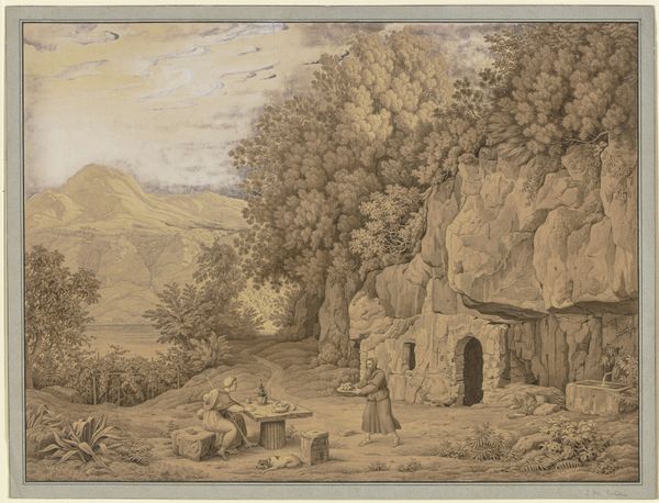 Adrian Zingg created this landscape drawing with pen and grey ink over pencil in the 18th century. Zingg's detailed landscapes offer us a glimpse into the lives of the people who lived and worked in the countryside. In this seemingly idyllic scene, we see a farmer with his horse-drawn cart, a modest inn, and an ancient bridge, elements that speak to the rhythms of rural life. But it is important to consider who is missing from this picture: where are the landowners, the nobles, the figures of authority whose wealth and power would have shaped the lives of these rural inhabitants? Zingg does not address the disparities of the era directly. But we can ask ourselves: how do such images normalize a social hierarchy, and what is the emotional effect of this representation on those who lived it? In Zingg's work, the natural world is interwoven with the social order, reflecting both the beauty and the complex realities of 18th-century life.