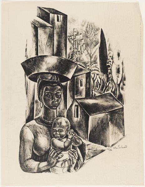 Leo Gestel rendered this charcoal drawing, "Boerenfamilie," depicting a rural family in a landscape filled with symbolic resonance. Observe the prominent motif of the lamb, held by a central female figure. Throughout art history, the lamb is charged with meaning, often symbolizing innocence, purity, and sacrifice. We see echoes of this symbolism stretching back to early Christian art, where the lamb represents Christ, the sacrificial offering. Consider, too, the recurring image of doves overhead, which also have been long associated with peace, divinity, and the Holy Spirit. Note how this motif appears throughout history, from ancient Roman mosaics to Renaissance paintings, always carrying connotations of spiritual transcendence. Gestel evokes something deeper than the surface depiction of rural life. The drawing subtly engages our collective memory, tapping into archetypal symbols that resonate on a profound, perhaps subconscious level. The emotional power of these familiar symbols suggests the enduring connection between humanity and nature.