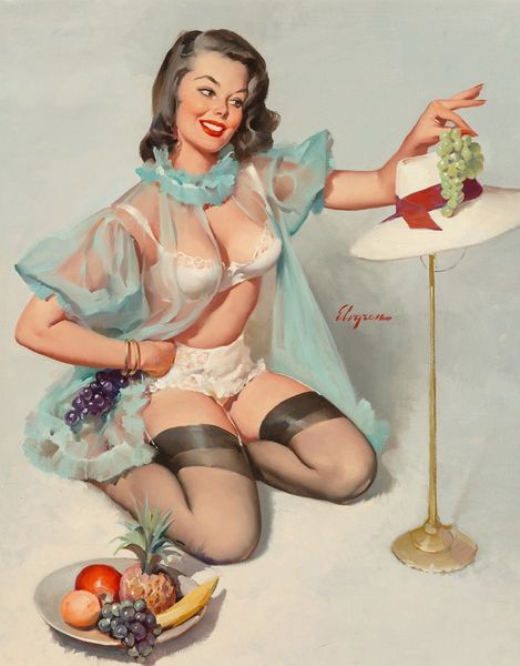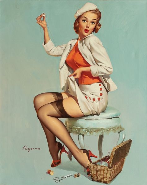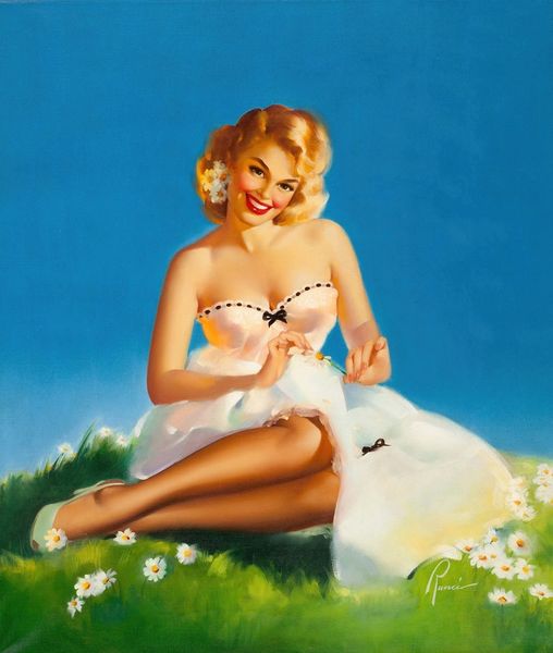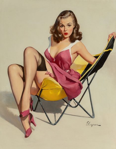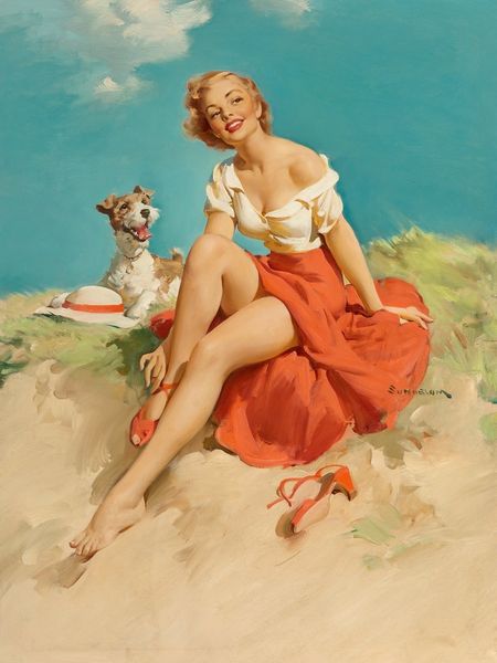 Here we see an image of a woman “At the Beach,” painted by Zoe Mozert, though the exact date is unknown. Mozert was celebrated as one of the few prominent women artists in the male-dominated field of pin-up illustration. This work participates in the visual language of the mid-20th century American pin-up, which often depicted women in playful and alluring poses. However, it's important to recognize that these images reflect the cultural context of their time, with all the attendant complexities and contradictions regarding women's roles and representation. While these images have often been criticized for perpetuating unrealistic beauty standards and objectifying women, we might also consider Mozert's own perspective as a female artist working within and perhaps challenging the conventions of the genre. The woman is depicted in a way that feels celebratory and confident. By delving into Mozert's biography, we might understand how her personal experiences and artistic choices intersect with the broader cultural narratives of her time.