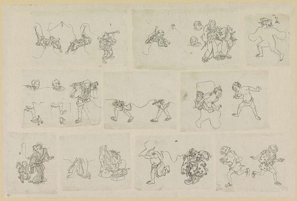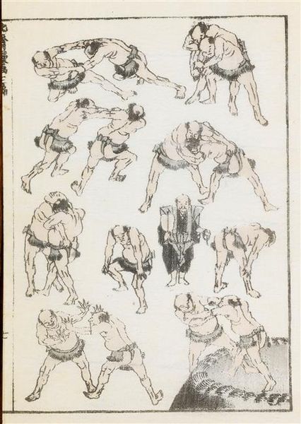 Katsushika Hokusai made this print of Sumo Wrestlers in the late 18th to mid-19th century. It's made of ink and color on paper, using a printing technique called woodblock printing, or *ukiyo-e*. The process begins with a drawing, which is then carefully transferred to a block of wood, usually cherry. A carver then uses specialized tools to cut away the areas that will not be inked, leaving a raised surface. Separate blocks are required for each color, adding to the complexity of the technique. The finished blocks are then inked and printed onto paper, often with the assistance of a *baren*, a disc-like tool that is rubbed on the back of the paper to ensure even contact with the block. In this print, the thick, expressive lines and subtle color variations demonstrate Hokusai’s skill. *Ukiyo-e* prints like this one were relatively affordable and accessible, contributing to a vibrant popular culture in Japan. So we can think of this print as a product of collaboration, combining the talents of the artist, carver, and printer, all contributing to a rich visual language that blurs the boundaries between art and craft.