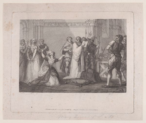 Caroline Watson made this stipple engraving of "Ophelia" after a painting by Robert Edge Pine in England. The print depicts the scene from Hamlet where Ophelia descends into madness. During the 18th century, Shakespearean characters became popular subjects for artists, reflecting a growing interest in English literature and theater. Reproductive prints like this one, circulated images to a wider audience, outside of the traditional exhibition spaces. They were often purchased for personal enjoyment, thus, these images gained new social and cultural significance. It is important to consider that the rise of reproductive prints coincided with a changing art market, and the professionalization of female artists such as Watson. Researching subscription lists and other archival material can give us an understanding of the cultural and economic contexts in which artists like Watson operated and how female artists navigated the art world.