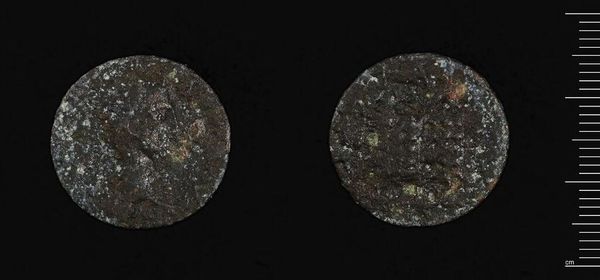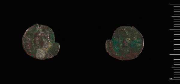 Curator: Here we have a coin, an AE3 of Constantine I, minted in Siscia. Editor: It feels like looking at something dredged from the bottom of the sea. It's incredible that such a small object carries so much history. Curator: Absolutely. As a medium of exchange, this coin speaks to economic power, but it's also an object of propaganda, bearing the image of the emperor. Editor: Propaganda indeed, but who really benefits from that image? The coin itself, meant to circulate among the masses, literally embodies power structures. How did the average person regard the imperial image in their daily lives? Curator: Perhaps as a constant, unavoidable reminder. It's funny, isn't it? Art shrunk down, commodified, and yet imbued with so much symbolic weight. Editor: And a reminder that even the smallest things can carry the weight of empire, then and now. Curator: I like that—a tiny mirror reflecting enormous forces. Editor: Exactly, and maybe questioning whose image is on our coins today.