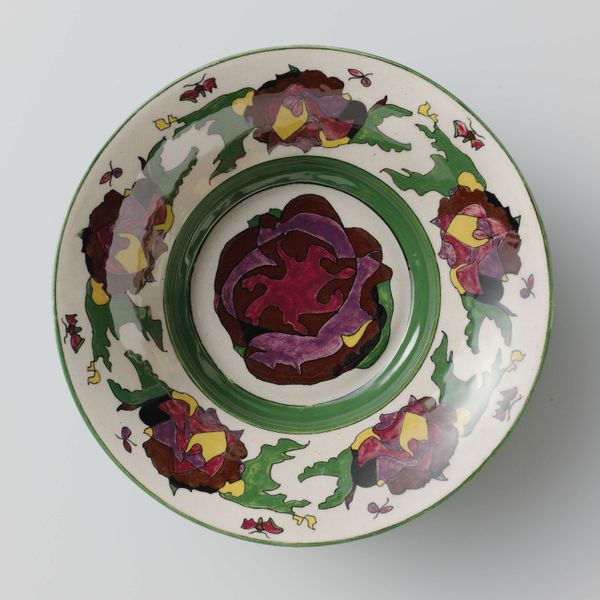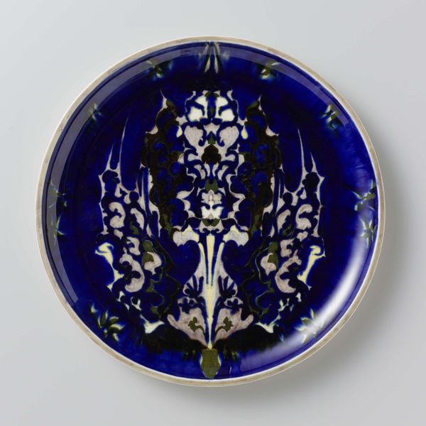 This earthenware plate, painted in many colours, was made by Theo Colenbrander. It’s just bursting with vegetal motifs and those ‘Oranje’ letters, a celebration of the Dutch royal family and the art of making all rolled into one! Colenbrander seems to have laid down some serious paint. It's not just colour, it’s texture, a whole landscape of feeling. I want to touch it, feel the slight imperfections, the brushstrokes that tell a story of the hand at work. Take those central lemons, for example. They're swimming in an abstract sea of blue and brown. This piece reminds me of Howard Hodgkin, in how he used ornamental motifs to evoke memories and emotions. Colenbrander, like Hodgkin, seems to be saying that art doesn't have to be perfect. It can be messy, ambiguous, and full of surprises. It's a conversation, not a lecture.