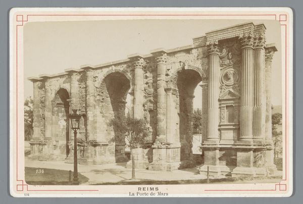 Curator: What a beautifully aged photograph. Jean Baptiste Berubet captured this albumen print of the Notre Dame du Port in Clermont-Ferrand, France, sometime between 1870 and 1885. Editor: It’s melancholic, somehow. That sepia tone and the delicate details evoke a powerful sense of history, and something lost. I’m drawn to the weight of those stone arches and the way light fades in the distance. Curator: The weight is palpable, isn’t it? Romanesque architecture always brings with it such associations, with echoes of pilgrimages and sacred space. Churches are also powerful symbols for local identity, cultural cohesion and the persistence of collective belief over generations. This building looks reassuring and immutable. Editor: What intrigues me is thinking about Berubet’s process. What type of equipment did he use? An albumen print like this involves coating paper with egg white and silver nitrate, making it sensitive to light. A fairly laborious method when you think of mass producing images. How many hands would have touched this photograph, from its conception to distribution? Curator: That’s a compelling perspective, bringing into focus not just the subject of the image but the tangible processes behind its creation and circulation. We’re holding something precious here; an early iteration of sharing photographic imagery widely. But what’s being shared carries weight in symbolic meaning – ideas of sacred buildings and Romanesque styles evoking certain places and times. Editor: It highlights a tension – this merging of mechanical reproduction with high architectural style. Early photography democratized access to these monumental landmarks. It was no longer limited to the wealthy taking grand tours, as photographs like this meant buildings like the Notre Dame du Port became available to the masses in image form. Curator: Exactly. By examining these convergences we understand both the symbolic function of imagery and its value within popular culture and artistic conventions. Even in its reduced photographic scale, it still represents solidity, continuity, and a spiritual ideal made material. Editor: It makes me consider the consumption of these images: perhaps placed in a family album, given as gifts, passed among friends. Photographs had multiple lives outside of simply being "art." Curator: Yes, absolutely. This photo is less an art object in the traditional sense, and more of an artifact embedded within complex historical contexts. Thank you for pulling it away from the purely aesthetic. Editor: And thank you for the historical symbolism that is present!