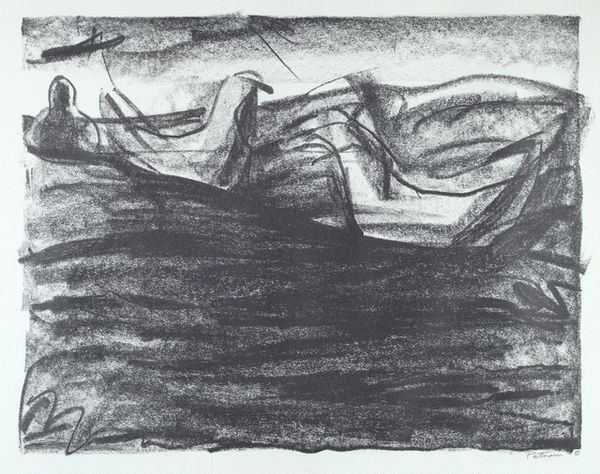 Curator: Looking at this pencil drawing, titled "Grand Lake" by Arnold Rönnebeck, there is an almost ethereal mood to the landscape that softens its bold geometric components. What strikes you most immediately? Editor: Well, the stark contrast definitely catches the eye. The artist really focuses on the fundamentals here – paper, pencil, and deliberate, repeated marks creating areas of light and shadow. It seems Rönnebeck wants us to think about process. Curator: That's a wonderful point, how Rönnebeck highlights that almost industrial production of marks that add up to a natural scene. It has a connection to modernism by breaking the lake into component shapes while echoing, through landscape, ideas about labor and industry. It’s a strong, publicly engaged kind of art that brings modern concepts back to the public sphere. Editor: Absolutely! Look at how the artist depicts reflections on the water, too: those aren't the natural shimmering refractions you’d expect. Instead, there are strong geometric forms, very solid, which speaks volumes about manipulating material – pencil, paper – to alter perceptions of a familiar substance. Curator: Exactly, and that also ties to his larger concerns. The lake as both a recreational space, perhaps for the rising middle class, but also a resource. By rendering it so starkly, Rönnebeck almost seems to ask us: what is this for? What does it represent? Editor: Yes, and it is important not to overlook the function of the sailboat – what would be luxurious pastime with its production relying on manufacturing industries, such as sails and hulls, the labor to build the materials, and leisure time required to even take a trip to Grand Lake to sail on. It seems Rönnebeck wants us to investigate all facets of production in this so-called nature scene. Curator: What a sharp way to put that. Ultimately this isn't simply about a day on the water. It makes you consider the underpinnings of the structures, labor, and markets, both visible and unseen, that contribute to what we see before us. Editor: And how our experience of the drawing also becomes something similar to our experience of that day at the lake – nothing happens without layers and layers of complex processes. Curator: Indeed. Thanks for diving into that, a perspective I won’t soon forget. Editor: Thank you! Always good to engage about materials, processes, and making practices in art.