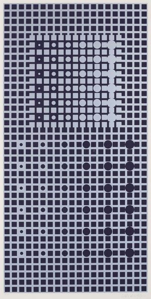 Editor: So, this is Jennifer Bartlett’s “Summer” from 1972. It's made with acrylic paint and… well, it looks like a vast field of variations on a theme, doesn't it? Each square feels like a little experiment. What catches your eye when you look at this piece? Curator: Ah, “Summer.” It reminds me of a vast, somewhat obsessive, data visualization project rendered by a slightly mad scientist… but one with an impeccable sense of aesthetic balance! It’s intellectual but also, paradoxically, playful. Each of these squares is a note in a visual symphony. Do you get a sense of how, by isolating a single element, she lets us see the underlying structure of… well, everything? Editor: I see what you mean! It’s like she’s deconstructing visual language, one little square at a time. Like taking apart words to see what letters they are composed of, which seems… very postmodern of her. Curator: Exactly. It’s as if she’s saying, “Here are the basic building blocks. Now, what will *you* do with them?” Also, you get a very different sense of “Summer” depending on how close you stand. Far away, and it's just a sea of pattern, close up, it gets rather personal and mysterious… How do you think the work changes if it was, say, bursting with colour? Editor: Wow, good question… It'd be completely different! I think it is all so calculated in a muted fashion, that colour could detract from what it means. It needs to be, not just the sum of it's parts but somehow reduced to an indivisible part of itself! It could feel…less thoughtful, I think? Curator: Yes! Exactly. The almost clinical black and white allows a deeper dive. Which is ironic, really. Who'd expect clinical aesthetics in summer? Well, it certainly gives *me* pause for thought! Editor: Definitely. I see pattern and variation so differently now. Thanks for this fascinating look into Jennifer Bartlett’s art.